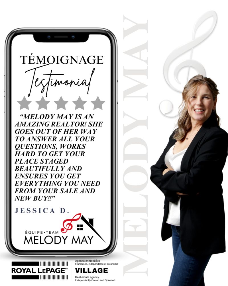 Chez Équipe/Team Melody May - Royal Lepage Village, nous sommes reconnaissants pour la confiance et les mots chaleureux de nos clients. Vos témoignages nous motivent à continuer d’offrir un service personnalisé et exceptionnel.